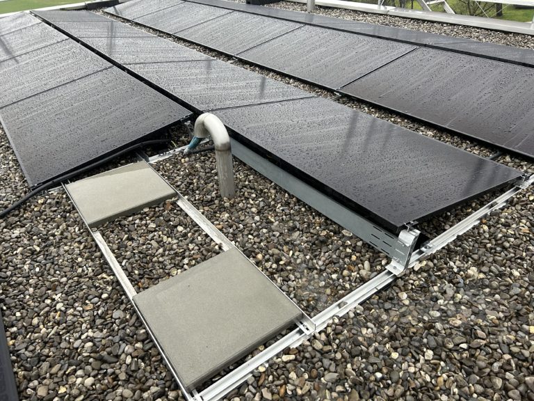 Panneaux photovoltaïques installés sur un toit plat, prêts à capter l’énergie du soleil.