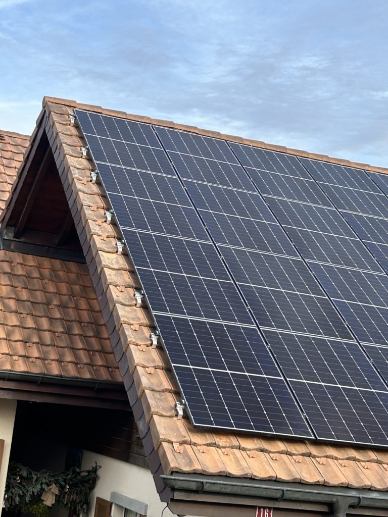 Panneaux photovoltaïques installés sur un toit en pente, prêts à capter l’énergie du soleil.