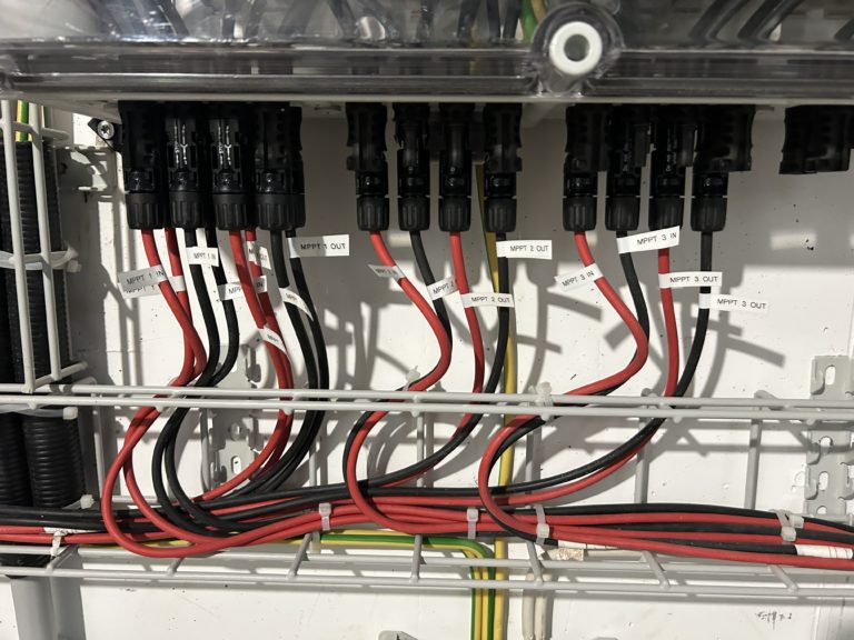 Raccordement organisé des entrées MPPT entre les panneaux et l’onduleur.