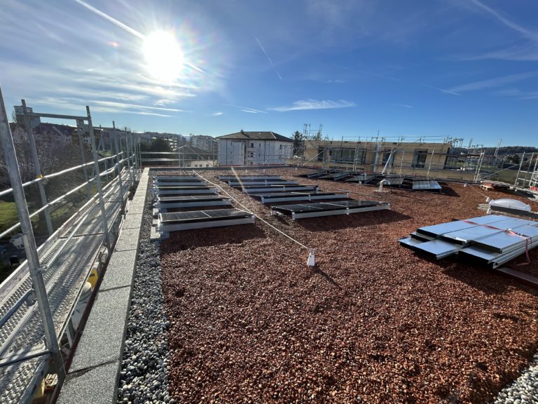 Panneaux solaires posés sur toit plat, prêts à produire de l’énergie.